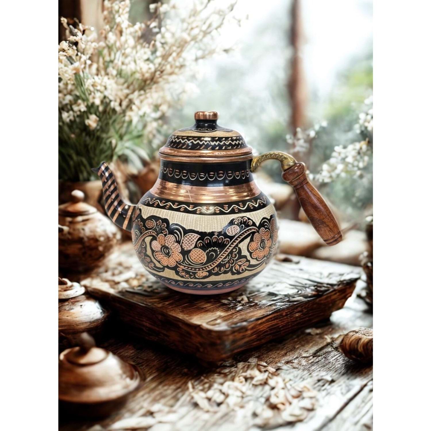 Geleneksel el işçiliği ile üretilmiş bu bakır demlik, nikel kaplama yüzeyi sayesinde paslanmaya karşı dayanıklıdır ve uzun ömürlü kullanım sunar. 0.80 mm kalınlığındaki bakır gövdesi ısıyı dengeli şekilde yayarak çayın daha lezzetli demlenmesini sağlar. Ahşap kulpu sayesinde el yakmadan rahat kullanım imkânı sunar.